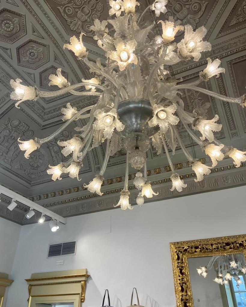 Il tutto esposto in un ambiente dal fascino senza tempo, caratterizzato da un maestoso soffitto a botte affrescato e da un lampadario in vetro che cattura la luce, esaltando l’eleganza della scena. Un’esperienza che celebra l’artigianato d’eccellenza, trasformando ogni accessorio in una storia di stile e passione.