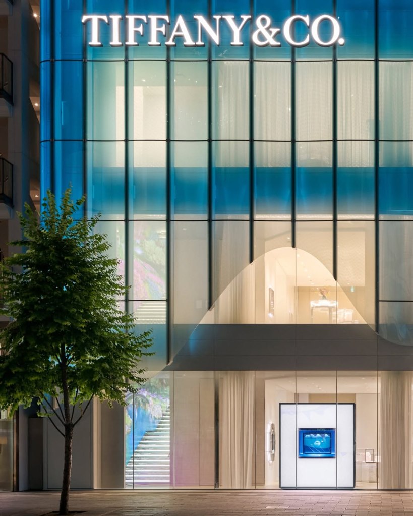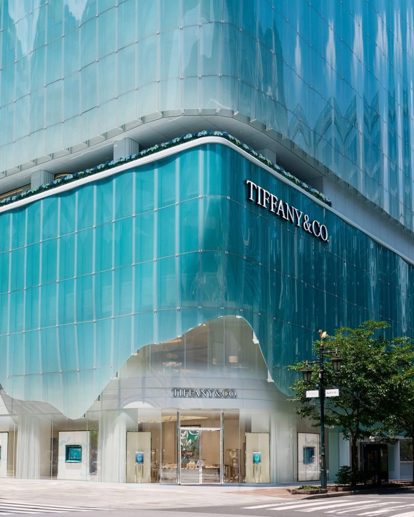 L’edificio, firmato dall’architetto Jun Aoki, si presenta come una scultura urbana: una facciata cristallina che ondeggia nei toni del Tiffany Blue®, evocando la leggerezza di una stoffa in movimento e la purezza di un diamante. All’interno, il progetto di Peter Marino rilegge il concetto di lusso contemporaneo attraverso materiali raffinati, linee essenziali e atmosfere immersive.