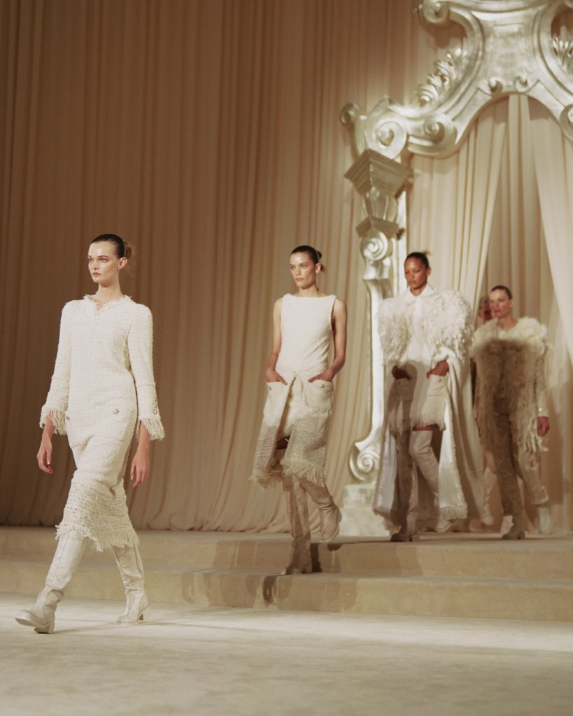 Firmata dallo stilista e scenografo franco-canadese Willo Perron, la scenografia ideata per la sfilata Haute Couture di Chanel, l’ultima prima dell’arrivo di Matthieu Blazy, rievoca l’atmosfera raccolta dei leggendari saloni al 31 di rue Cambon. È in questi ambienti che Gabrielle Chanel, nel corso del Novecento, accoglieva clienti fidate e pochi selezionati giornalisti per presentare le sue collezioni.