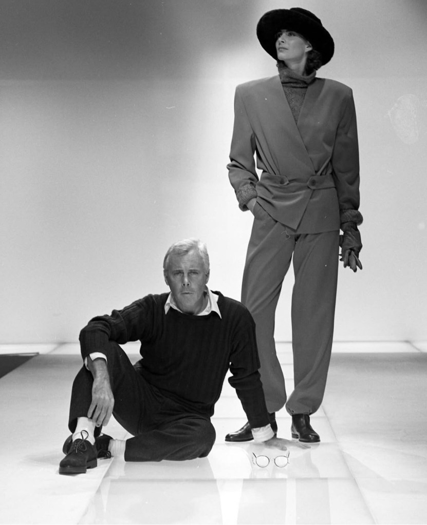 Questa filosofia si rifletteva anche nella moda femminile: Armani vedeva l’abbigliamento come uno strumento di espressione capace di valorizzare la personalità della donna senza costringerla. Prediligeva linee pulite, minimalismo e funzionalità, rifiutando corsetti e ornamenti eccessivi, e reinterpretava capi maschili – come blazer e pantaloni – per fondere forza e delicatezza. In questo modo, la donna Armani poteva essere elegante, fiera e libera nei movimenti, incarnando una nuova idea di stile contemporaneo.