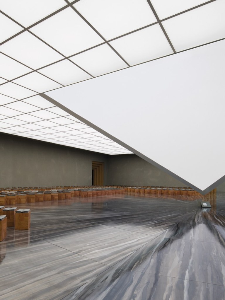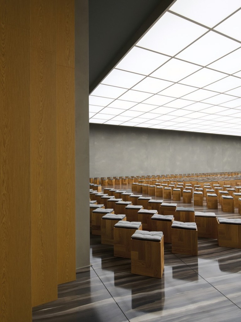 Tutto concorre a creare una drammaturgia silenziosa, dove ogni gesto è amplificato dal silenzio architettonico che lo circonda.