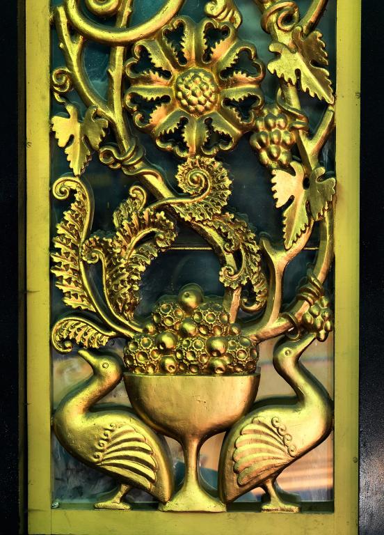 Insieme, Lanvin e Rateau costruirono un universo estetico coerente e inconfondibile: un equilibrio tra classicismo e sogno, tra gusto per l’Oriente e fascinazione per le civiltà antiche. Al Théâtre Daunou, questa visione prende corpo in una sinfonia di blu, oro e avorio, i colori simbolo della maison. Figure di animali esotici e creature fantastiche danzano sulle superfici, in un gioco di rilievi e riflessi che unisce sensualità e misura, teatralità e disciplina formale.