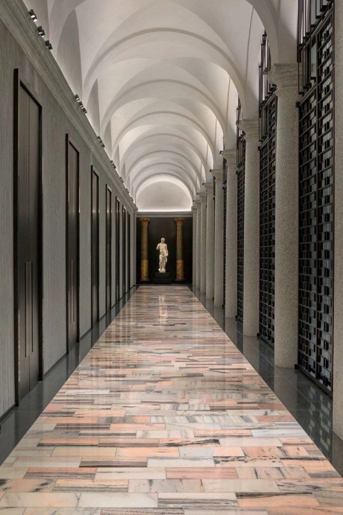 Nei volumi ottocenteschi restaurati, l’architettura monastica si apre a nuove funzioni: la sede della divisione beauty della maison, progettata da +Arch, interpreta lo spazio come una “casa per la bellezza”. Un intervento di retrofit e riqualificazione che conserva l’impianto originario a corte e trasforma il chiostro in un luogo di ricerca, dove l’eredità spirituale incontra la cultura del progetto.