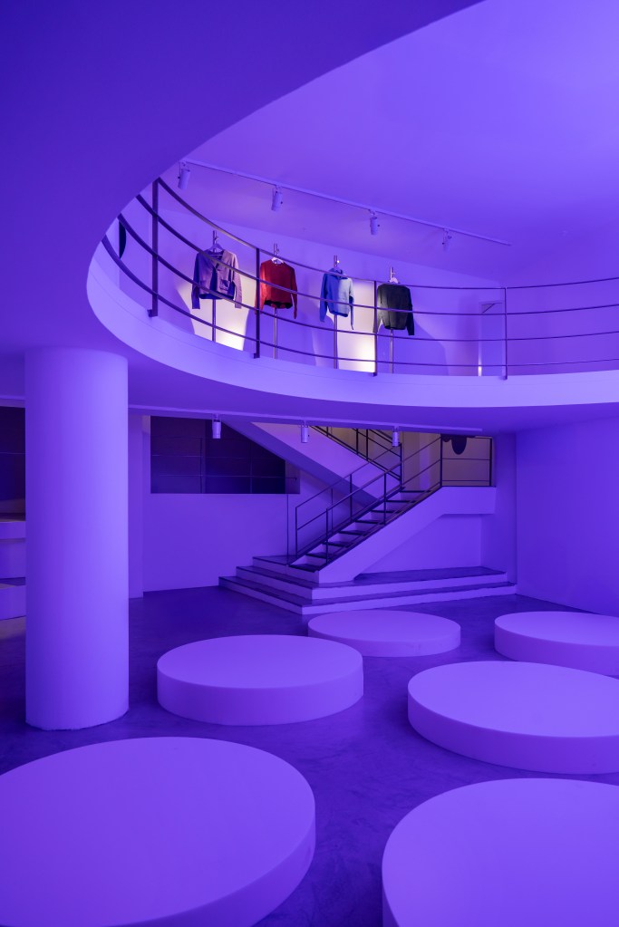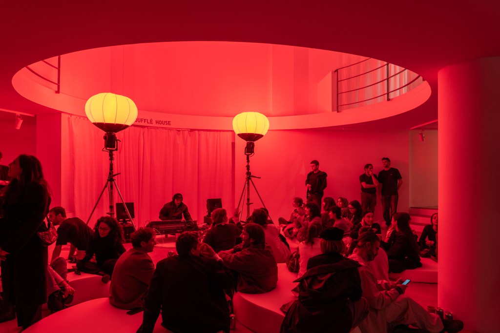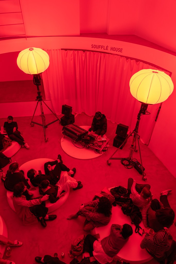 Ideata in collaborazione con Finemateria, studio milanese specializzato nel design di ambienti sperimentali, la Soufflé House si presenta come un paesaggio sensoriale dove maglieria, musica e installazioni interattive si intrecciano in un racconto poetico e contemporaneo.