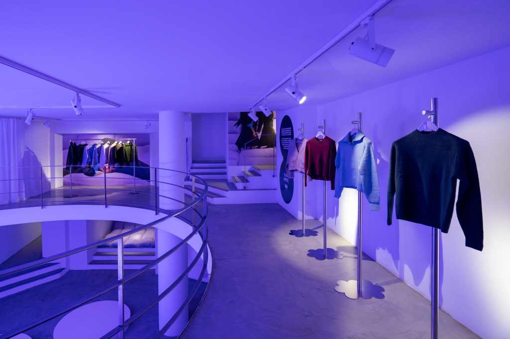 All’interno, maglioni, sciarpe e accessori della collezione Soufflé diventano protagonisti di un percorso immersivo che dialoga con la luce, il suono e la texture del filato. La morbidezza si traduce in esperienza tattile e visiva, amplificata da performance musicali di quattro artisti e un dj-set che accompagna il visitatore in un viaggio tra comfort e innovazione.