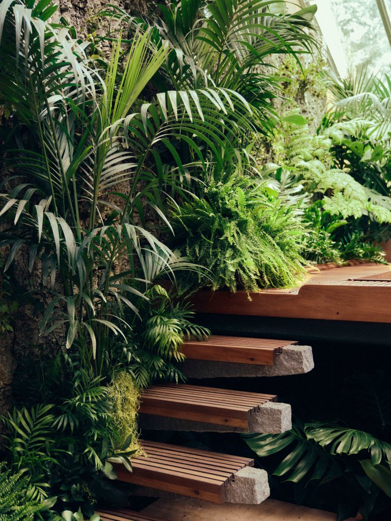 La serra perde così la funzione di spazio complementare dedicato alla cura delle piante per trasformarsi in salotto. Un luogo in cui la convivenza con il verde diventa esperienza quotidiana e continua, capace di introdurre un registro alternativo rispetto all’esterno alpino: un paesaggio potente, ma anche severo. Il Winter Garden offre una condizione diversa, più raccolta, senza negare il contesto naturale che lo circonda.
