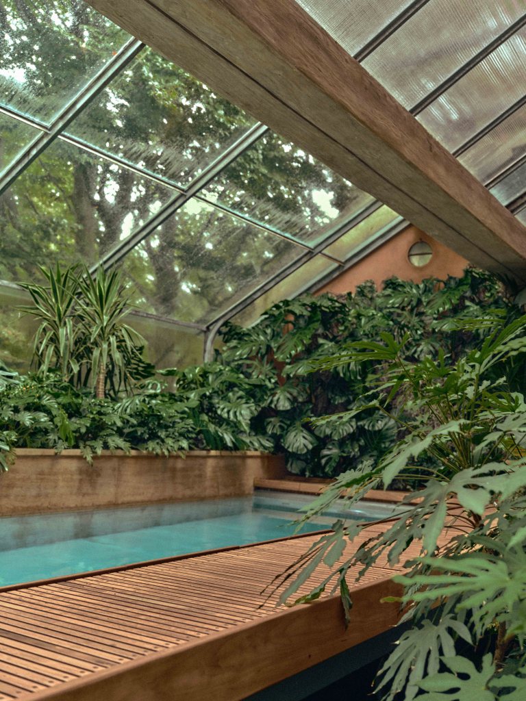 Dal dialogo tra Porcinai e la famiglia Zegna nasce il Winter Garden di Trivero. Progettato negli anni Cinquanta, questo spazio interpreta una visione condivisa fondata sull’equilibrio tra vetro, luce, acqua e vegetazione. Collocato tra la villa e la fabbrica, il giardino d’inverno non risponde alla tipologia tradizionale della serra. È uno spazio abitato, concepito come ambiente domestico, in cui la vegetazione assume un ruolo strutturale: cresce sotto la copertura vetrata, si espande sulle superfici verticali, invade i pavimenti, avvolge gli arredi.