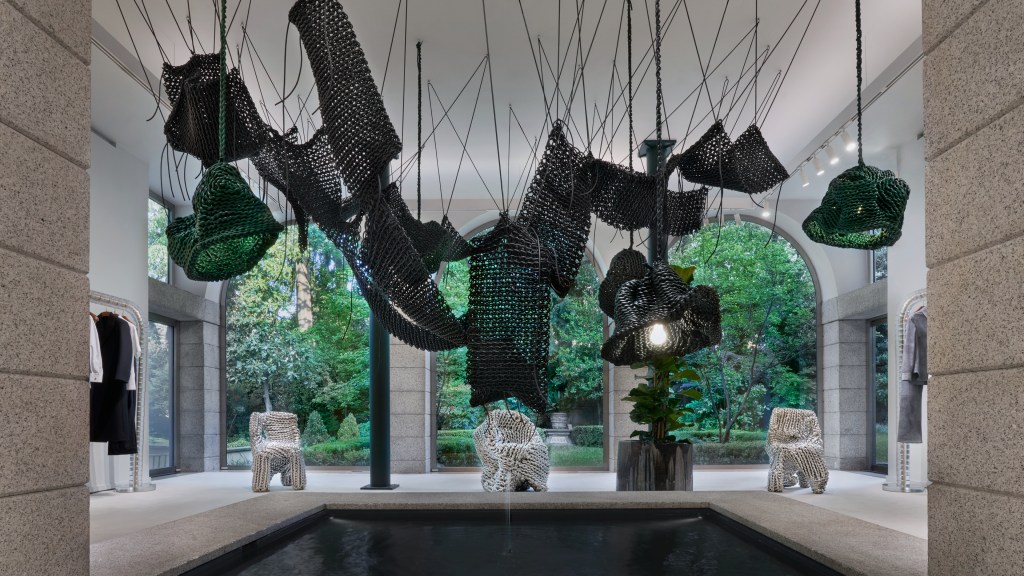 Ed è proprio questa visione a renderlo un partner naturale per Bottega Veneta. Da una parte, l’artista che esplora il potenziale creativo delle connessioni; dall’altra, una maison che ha costruito la propria identità sulla maestria artigianale e sul linguaggio dell’intreccio. Durante la Design Week, Lightful non resterà confinato allo store di Via Sant’Andrea. Il progetto si estenderà infatti anche in altri luoghi selezionati di Milano, attraverso una serie di attivazioni diffuse pensate per coinvolgere la città e trasformare l’esperienza in un racconto urbano.