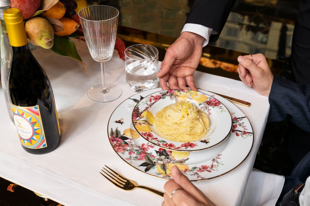 Al centro della scena, la mise en place come gesto culturale e simbolo di convivialità: la tavola diventa spazio narrativo, luogo di incontro e celebrazione. L’esperienza è completata dalla proposta gastronomica firmata DG Martini, che rende omaggio alla tradizione culinaria italiana attraverso una selezione di piatti iconici.